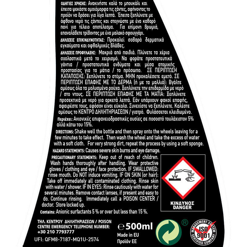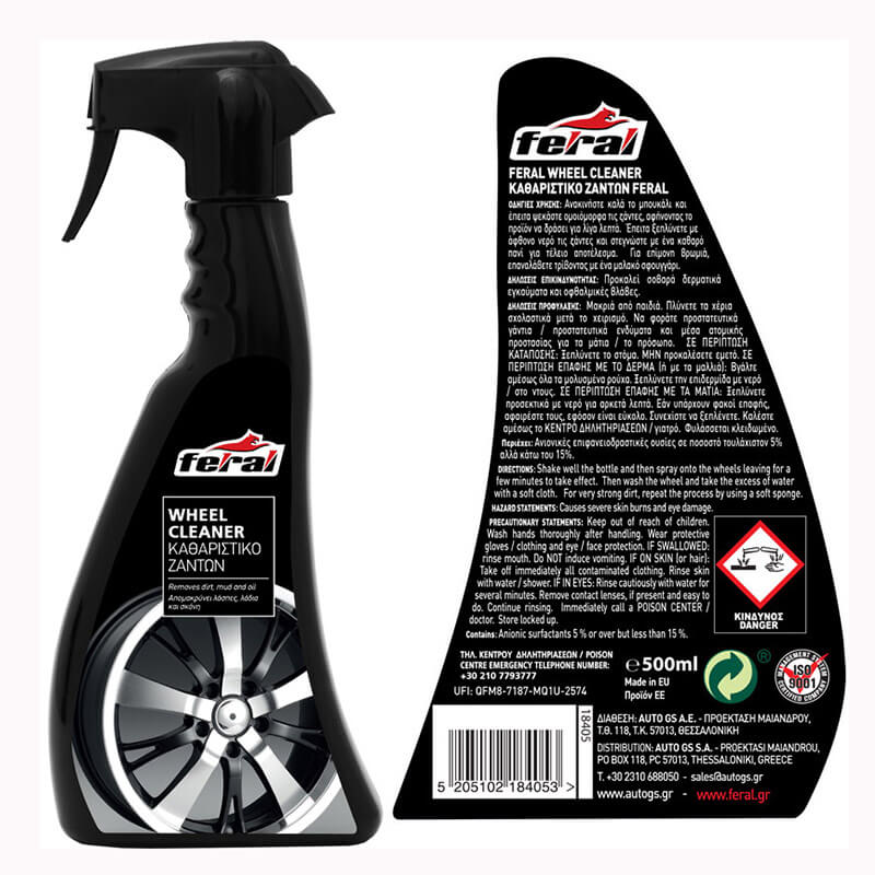 Καθαριστικό Ζαντών Feral 500MLΤο καθαριστικό ζαντών Feral είναι ένα προϊόν με μοναδική σύνθεση που δρα αποτελεσματικά πάνω στην ζάντα απομακρύνοντας λάσπες, λάδια, και σκόνη. Οδηγίες Χρήσης:Ανακινήστε καλά το μπουκάλι και έπειτα ψεκάστε ομοιόμορφα τις ζάντες αφήνοντας το προϊόν να δράσει για λίγα λεπτά.Έπειτα ξεπλύνετε με άφθονο νερό τις ζάντες και στεγνώστε με ένα καθαρό πανί για τέλειο αποτέλεσμα.Για επίμονη βρωμιά επαναλάβετε τρίβοντας με ένα μαλακό σφουγγάρι. Ελληνικό ΠροϊόνΛεπτομέρειες Προϊόντος Περιεχόμενο: 500ML Μοντέλο Μάρκα: Universal Μοντέλο: Universal Χρονολογία: Universal