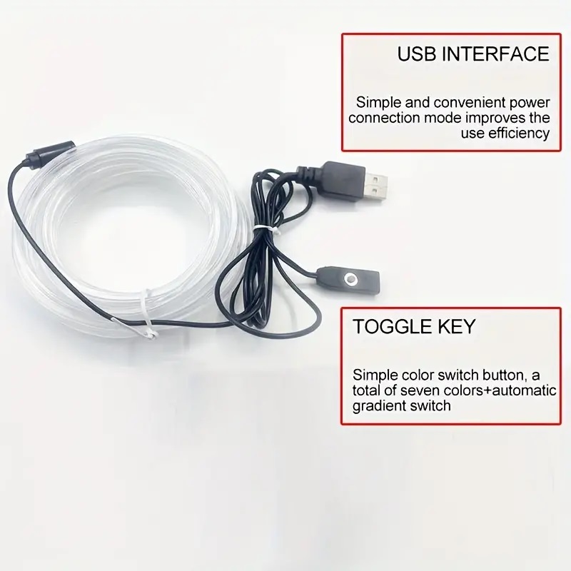 Ambient Light Οπτική Ίνα Διακοσμητικό Φωτισμός Led USB σύνδεση με 7 χρώματα 3 μέτρα